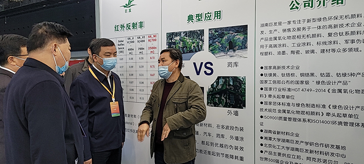 展会期间,湘潭市吴志雄副市长、贸促、工信、发改等各政府部门领导一行莅临湖南乐动online(中国)展厅(A449)参观指导。我公司总工程师王文强先生等工作人员热情接待副市长一行。王文强总工程师向吴市长一行介绍了湖南乐动online(中国)近年来,不断斥巨资对5G通讯新材料及新型环保无机颜料等进行探讨与摸索,陆续研制出5G通讯用LDS新材料、红外反射无机新材料,环保混相无机颜料等系列品种,现已逐步推向市场。吴市长一行领导对湖南乐动online(中国)对公司不断发展壮大的行业规模和日益广阔的发展前景给予了充分肯定,并对今后企业的发展、竞争方向提出了建议。吴市长希望公司在下阶段工作中,不断巩固现有技术优势的基础,进一步加大科研投入力度,不断拓宽、创新销售思路,坚持高起点、高标准、高要求的管理模式,准确把握产品质量关,不断提高环保新材料系列产品在国内外的知名度和美誉度。